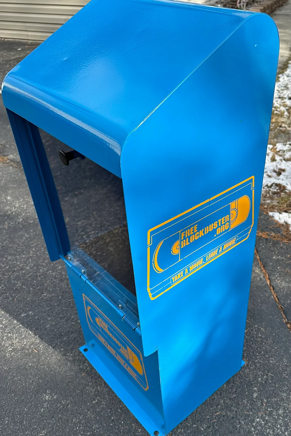 Build your franchise! Many FreeBlockbuster locations are refurbished newspaper boxes, but you can make yours out of almost anything! If you aren’t able to find or build your franchise, we have a limited number of fully-decorated Free Blockbuster Boxes available while supplies last.