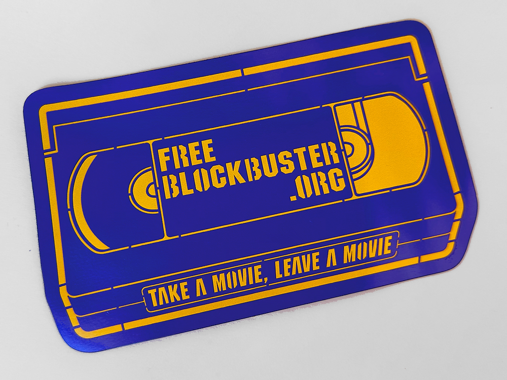 A Free Blockbuster is a place where people can leave movies so other people can borrow them. Like those Little Free Libraries where you can take or leave a book, but for VHS tapes and DVDs (and anything else you want to share with your neighbors).