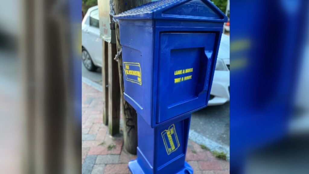 The grab-and-go movie stand is located in Church Hill and is complete with VHS tapes and DVDs.