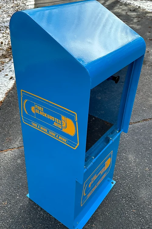 FREE SHIPPING in as little as (2) weeks! The most common question we receive is “Where can I find a box?” At long last, we are finally able to offer a fully-decorated freestanding Free Blockbuster movie honor box.